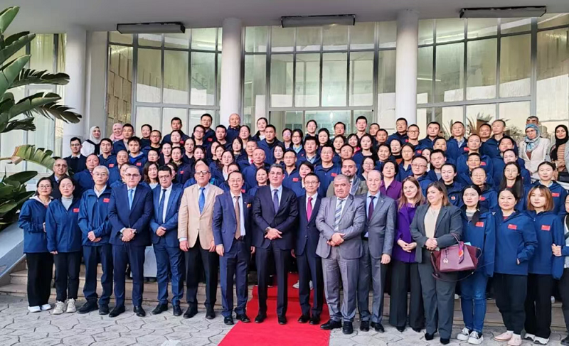 2025年12月1日,阿尔及利亚卫生部、中国驻阿使馆联合举办中国第28批援阿医疗队离任欢送会。同济医院医生陈红(前排右3)
