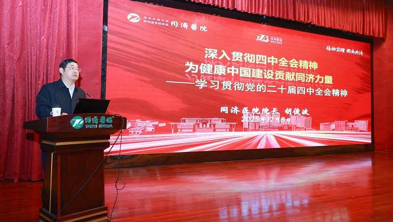 同济医院院长胡俊波围绕《深入贯彻四中全会精神,为健康中国建设贡献同济力量》作专题授课。他深刻解读党的二十届四中全会的核心要义与重大意义,全面回顾“十四五”期间湖北省及医院在医疗卫生领域取得的显著成效,同时展望“十五五”发展蓝图。他指出,当前医疗卫生事业发展任务艰巨、前景光明,要乘势而上、久久为功,奋力书写医院高质量发展新篇章,为健康中国建设注入更多同济力量。