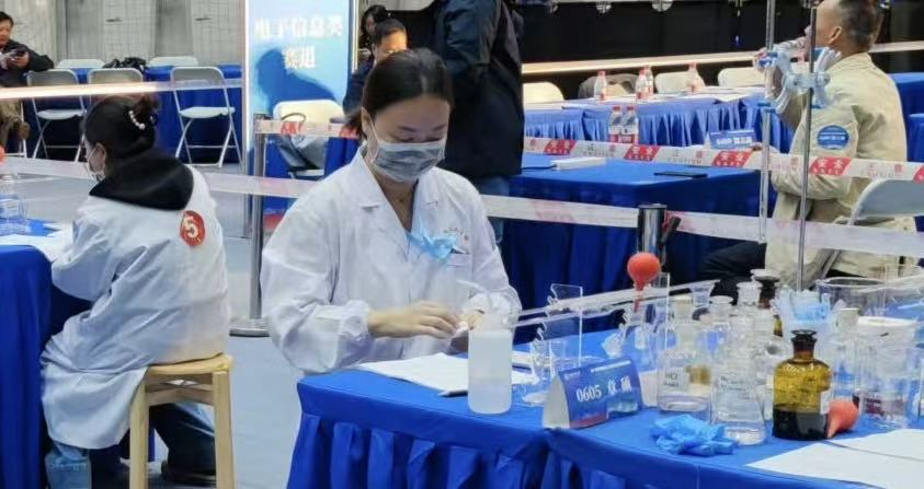 比赛过程中,王瑾从精确计算称量、规范使用仪器,到熟练进行滴定分析、细致处理实验废液,每一个步骤都井然有序,展现出深厚技术功底和严谨求实的科学态度。经过激烈角逐,王瑾始终稳定发挥,最终凭借高超的业务技能水平荣获三等奖。