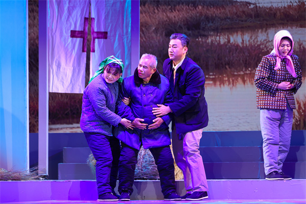 初读剧本,见马大娘台词不多、故事简单,只是个接受裘老救治的晚期血吸虫病患者,便以为只需记好台词和站位即可。但是随着导演组带领我们做人物性格分析,打磨台词,让我认识到同一句话因语气、语调、重音不同而呈现出的万千力量。我开始练发声、琢磨角色细节,学习借鉴优秀演员的表演。