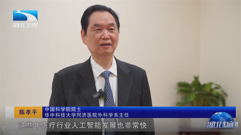 中国科学院院士、同济医院外科学系主任陈孝平,中国工程院院士、同济医院妇产科学系主任马丁参加发布会。陈孝平院士接受媒体采访时表示,“这些年医疗行业人工智能发展也非常快,湖北是人才的高地、科技的高地,湖北省可以在这个领域先行一步。”