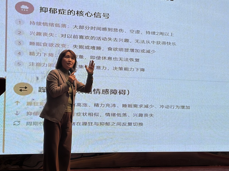 典礼结束后,同济心理健康教育中心高春兰老师为同学们开展心理健康专题培训。她围绕医学生临床阶段常见的学习压力与情绪调适问题,通过互动交流与案例分享讲解科学的心理调适方法,帮助同学们提升心理韧性,以积极心态迎接临床学习挑战。