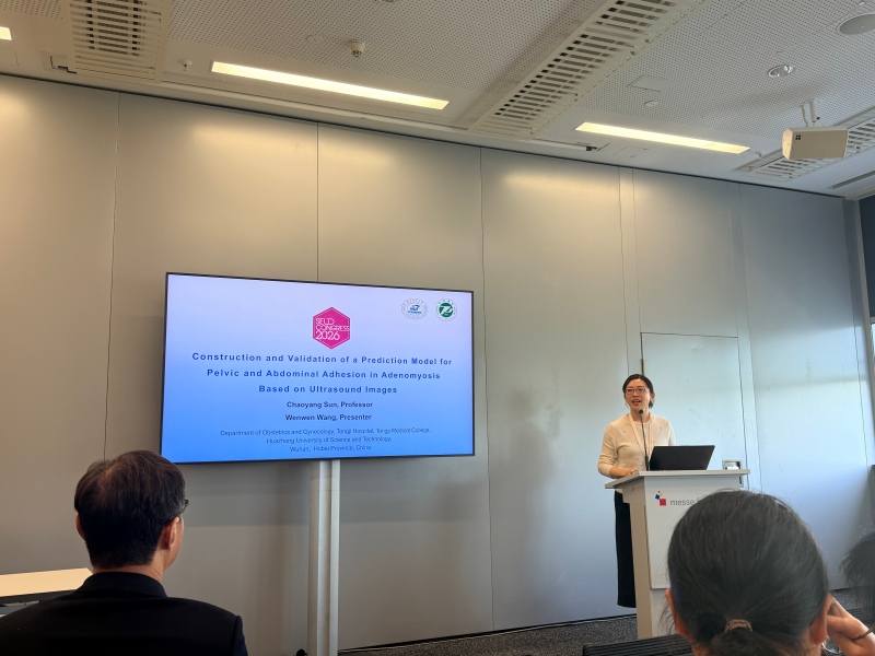 4月9日至11日,2026年子宫内膜异位症与子宫疾病学会(Society of Endometriosis and Uterine Diseases)年会于在德国法兰克福会议中心举行。在4月9日的中韩分会场上,华中科技大学同济医学院附属同济医院普通妇科孙朝阳教授、马湘一教授团队的代表汪雯雯副教授,就“基于超声图像的子宫腺肌症盆腔与腹腔粘连预测模型的构建与验证”作专题报告,展示了团队在妇科疾病智能诊疗领域的最新研究成果。