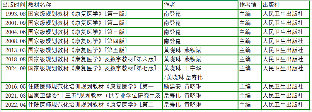 自1993年以来,康复医学科共主编、副主编教材及专著45余部,其中科室主编的重点教材具体如下: