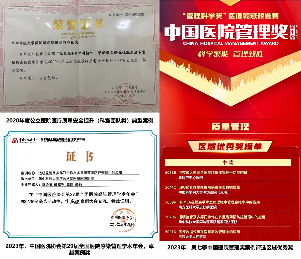 先后获得2020年公立医院医疗质量安全提升(科室团队类)典型案例、2023年第七季中国医院管理奖案例评选区域优秀奖、2023年中国医院协会第29届全国院感年会第五届PDCA大赛卓越案例等五项国家级奖励。