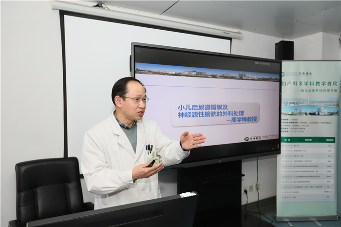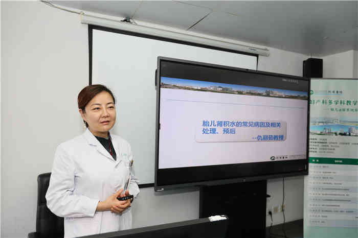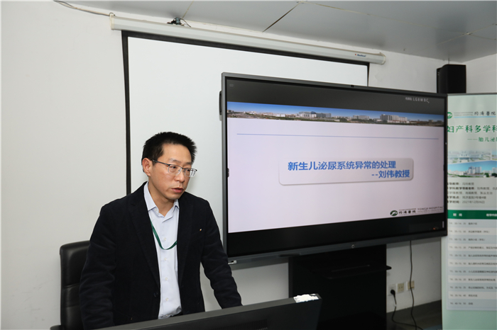 随后,以该病人病情为例,教授们为大家带来了胎儿泌尿系统异常的全方位讲解。胎儿医学副主任医师肖娟讲授了产前诊断的意义、指征及内容;胎儿超声主任医师徐晓燕讲授了胎儿肾积水的超声表现及功能评估;小儿肾内主任医师仇丽茹讲授了胎儿肾积水的常见病因及相关处理、预后;小儿外科副教授、副主任医师周学锋讲授了小儿后尿道瓣膜及神经源性膀胱的外科处理;新生儿科副主任医师刘伟讲授了新生儿泌尿系统异常的处理;最后围产医学科主任、副教授、主任医师冯玲针对该患者讲授了终止妊娠的时机、方式及“问题儿”出生的思考。