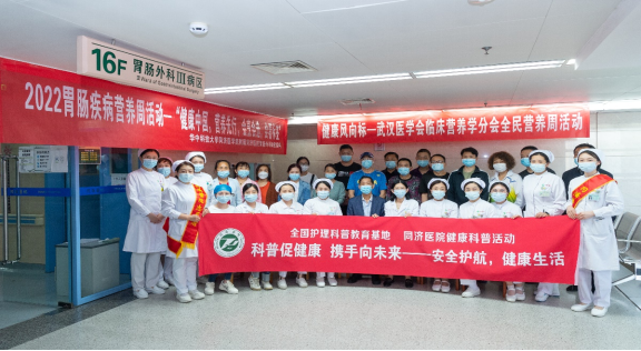 5月15日-5月21日是全民营养周,5月20日,同济医院胃肠外科联合临床营养科以胃肠道肿瘤患者的营养问题及常见的饮食误区为核心,开展了“胃肠道肿瘤疾病营养周”活动,活动的主题是“健康中国,营养先行”,“会烹会选,会看标签”,“‘胃’您营养,健康‘肠’伴”!