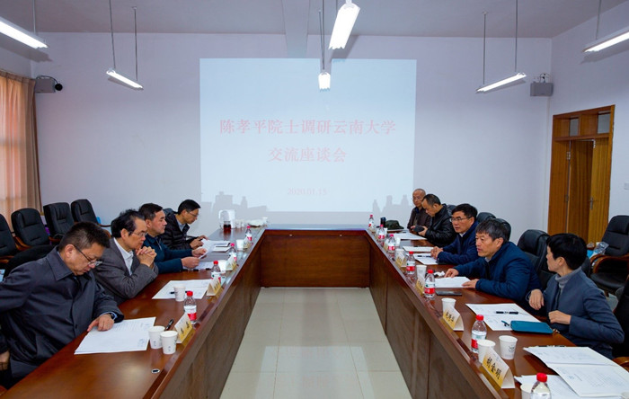 2020年1月15日,陈孝平院士到云南大学调研并在化工学院进行座谈交流。云南大学校长方精云、副校长赵琦华,云南省卫健委副主任白松,云南省第二人民医院院长韦嘉,以及省卫健委和云南大学相关部门负责人、学术带头人、教师代表参加了座谈交流。