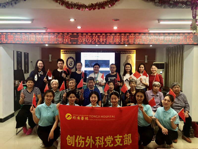 为进一步提升老年创伤救治水平和养老服务质量,响应“礼赞共和国,智慧新生活”的科普主题活动,9月19日同济医院创伤外科走进硚口区荣华街中山社区,为社区老年人进行健康科普义诊活动。