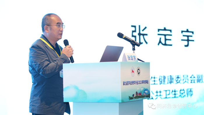 湖北省医学会创伤学分会主任委员、同济医院副院长白祥军致辞并作湖北省创伤医学工作报告,介绍了湖北省创伤医学近年的蓬勃发展。同济医院副院长唐洲平致辞,强调了同济医院一直以来对创伤医学的发展高度重视,同时对未来发展规划进行展望。湖北省卫生健康委员会副主任张定宇致辞,他指出创伤救治是国家重大公共卫生事件医学中心的主要职能之一。推进创伤救治体系建设,不仅仅是提升人民健康水平的需要,也有助于打造完善的公共卫生应急救援体系,应该高度重视创伤救治体系建设和创伤医学的发展,从多方面给予大力的支持,并预祝本次大会圆满成功。