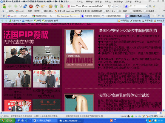 PIP公司生产的劣质隆胸硅胶被植入女性体内后,破裂的比例高于正常标准。虽然PIP公司已于2010年破产关闭,但是在关闭之前,该公司已有大约数十万件假体远销世界各地,用于隆胸手术。