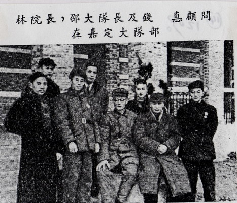 林竟成院长(左三)、邵丙杨大队长(左二)在血防嘉定大队部