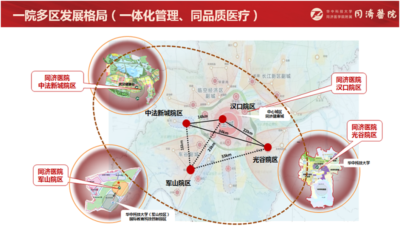 重视平台建设,专科实力雄厚。医院现有汉口院区、光谷院区、中法新城院区、军山创新基地,设63个临床和医技科室;是世界卫生组织康复培训中心、国家重大公共卫生事件医学中心、辅导类国家医学中心创建单位、国家妇产疾病临床医学研究中心、委省共建国家区域医疗中心建设输出单位;是委省共建国家高质量发展试点医院、建立健全现代医院管理制度试点医院;拥有国家重点学科11个(含培育学科3个)、国家临床重点专科及建设项目40个(全国第二);全国重点实验室1个、教育部重点实验室3个、国家卫健委重点实验室2个,湖北省重点实验室5个;湖北省质控中心23个、湖北省级临床医学研究中心14个、湖北省工程研究中心3个。