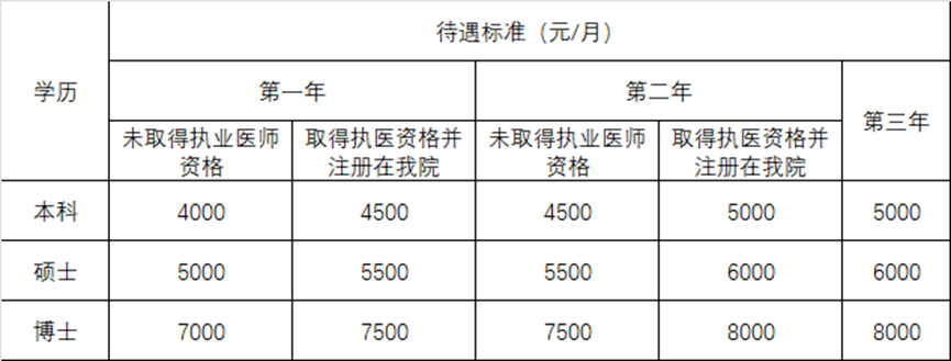 4. 住宿安排:依据医院实际情况免费提供医院集体宿舍或住房补贴600元/月。