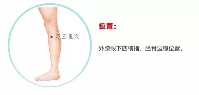 按揉足三里穴:坐于床上,两膝关节自然伸直,用拇指指腹按在同侧的足三里穴上,适当用力按揉1分钟,感觉以酸胀为度。