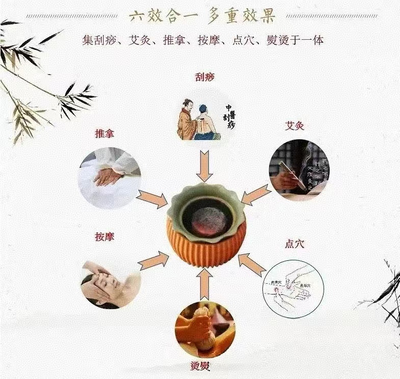 火龙罐有机的结合了推拿、刮痧、艾灸、按摩、烫熨等中医传统疗法的功效,能够平衡阴阳,可调和脏腑、疏通经络、温中散寒、以火攻邪、温补阳气、补益强身。