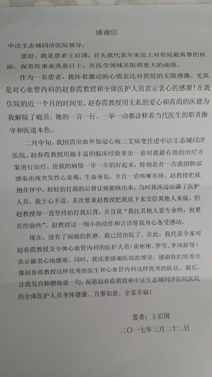 淳朴见真情!--感谢同济医院中法新城院区心内科所有医护人员