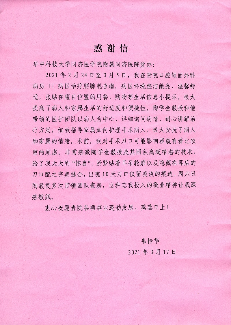 致口腔科感谢信
