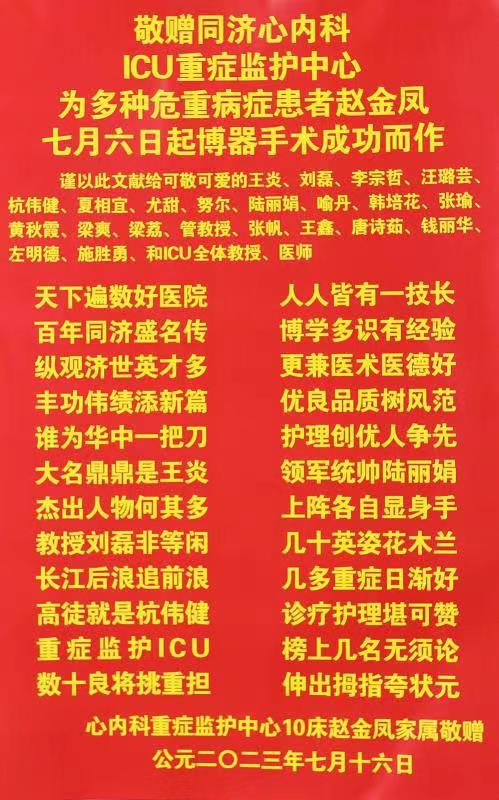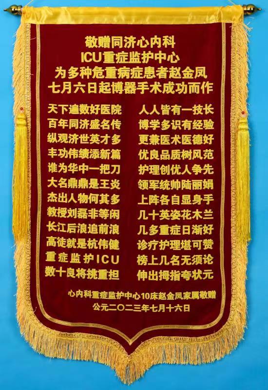 赠给心内科ICU重症监护团队的锦旗和感谢信