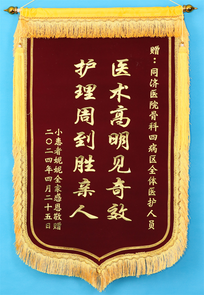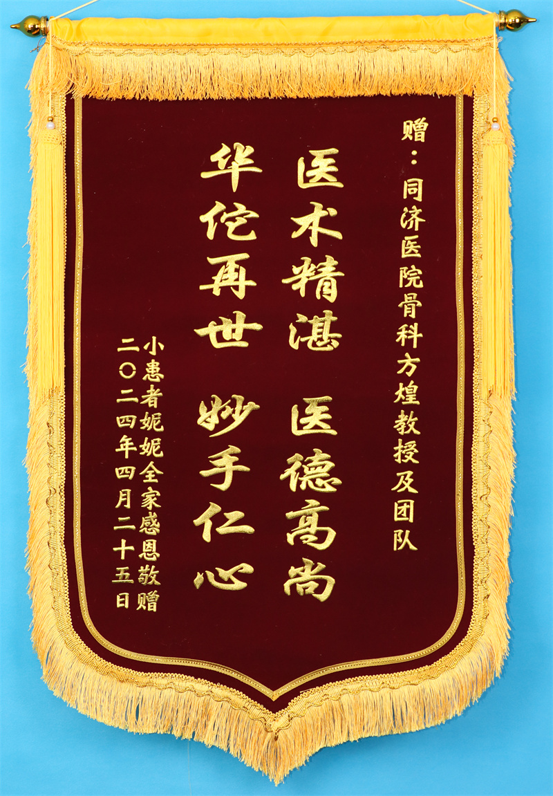 患者给骨科教授方煌及团队、骨科四病区全体医护人员的锦旗