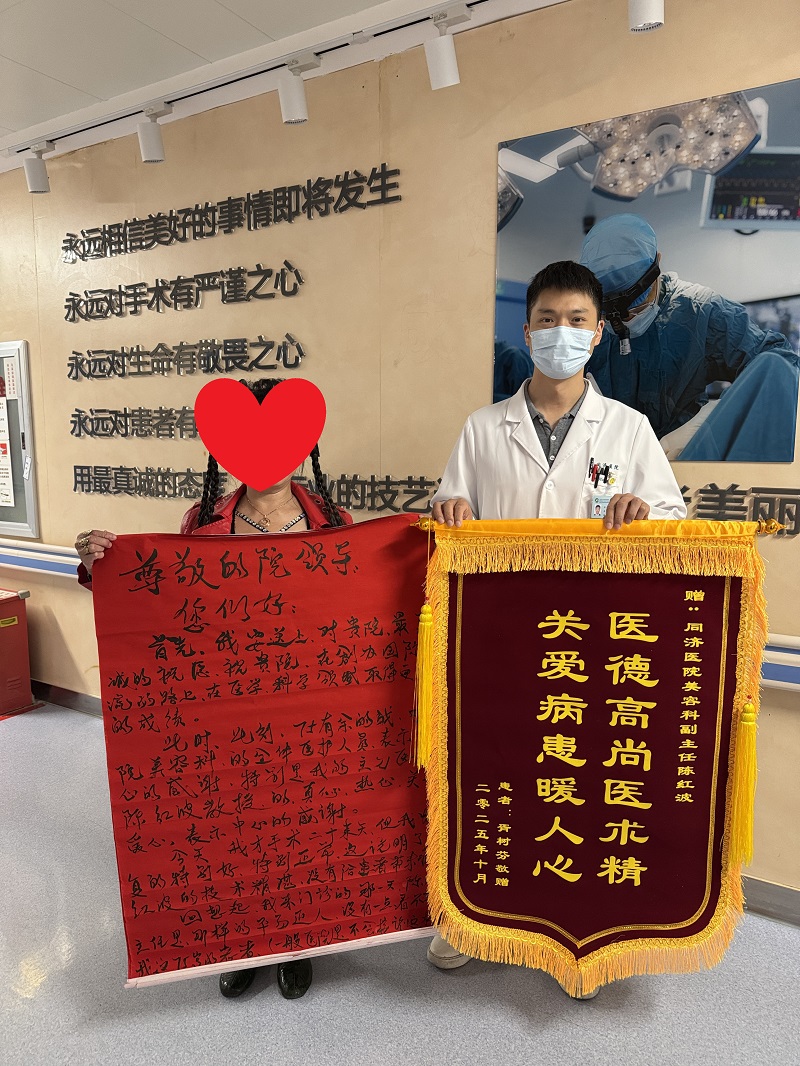患者给整形美容外科陈红波及医护人员的锦旗、感谢信