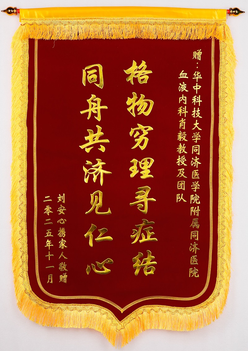 患者给血液内科主任医师肖毅及团队的锦旗
