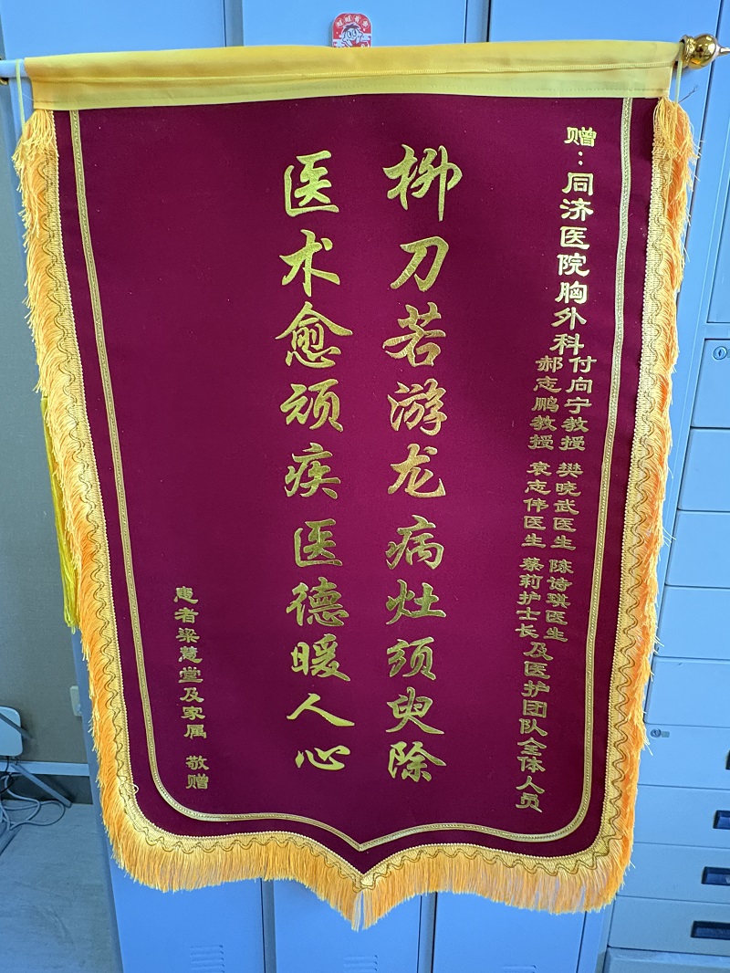 患者及家属给胸外科付向宁教授团队及医护人员的锦旗