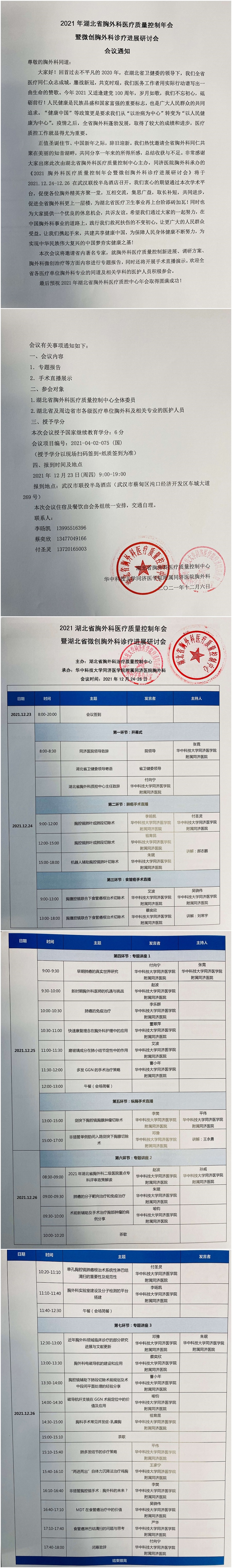 2021 年湖北省胸外科医疗质量控制年会暨微创胸外科诊疗进展研讨会会议通知