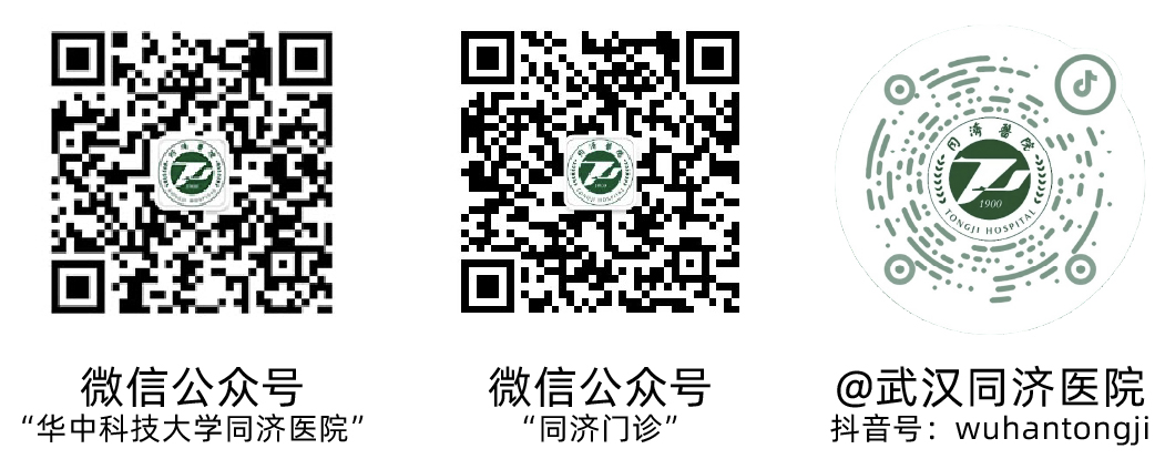 扫码下载“掌上同济”APP,或关注微信公众号、支付宝生活号、抖音号,了解更多健康宣教知识。