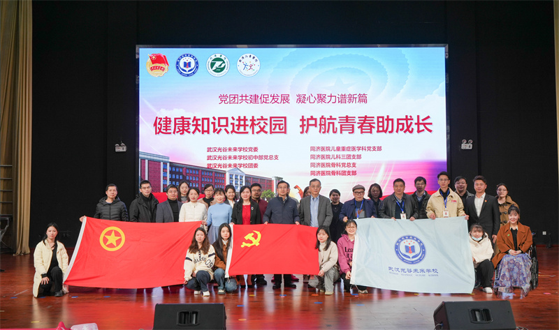 11月17日下午,同济医院儿童重症医学科(PICU)党支部联合骨科党总支携手儿科三团支部,骨科团支部至武汉光谷未来学校开展“健康知识进校园,护航青春助生长”的活动。骨科党总支书记郭风劲教授,PICU党支部书记陈瑜主任医师,PICU党支部宣传委员及儿科三团支部副书记高欢,外科团总支书记李觅副教授带队参加了活动。