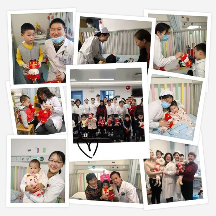 全体医护人员为小朋友们送上节日的问候和祝福,并为住院的孩子们准备了可爱、精美的小礼物——祝福鼠。这一天,白衣天使们是病房最受欢迎的人,走到哪里都有一群小跟班,悦耳的童声和笑声在病房的每个角落飘扬,看着一张张童真的小脸蛋,映衬着吉祥火红的祝福鼠,露出甜甜的笑容,大家似乎都回到了童年的时代。