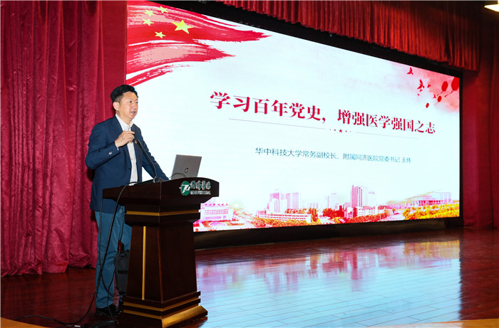 2021年5月19日,为扎实开展党史学习教育专题学习,华中科技大学常务副校长、附属同济医院党委书记王伟同志以《学习百年党史 增强医学强国之志》为题,为同济医院党史学习教育读书班暨党史大讲堂活动作首场报告会,同济医院院长刘继红主持报告会。华中科技大学党史学习教育第五督导组肖克难主任、副组长徐冬英书记、组员黄翠芳老师出席报告会。同济医院院党委理论学习中心组成员、副处级以上干部、全院各基层党委、党总支、党支部书记、支部委员等400余人参加会议。光谷院区、中法新城院区设置视频分会场,党员代表在线听取报告。