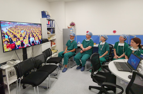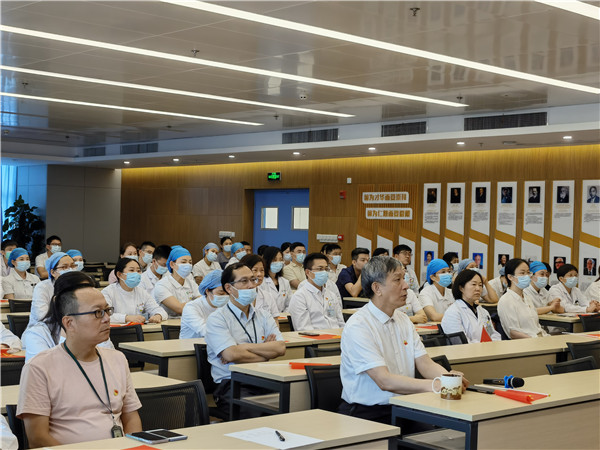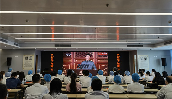 7月1日上午,在华中科技大学同济医院,两百余名党员干部职工、离退休党员、学生党员集中收看习近平总书记在庆祝中国共产党成立100周年大会上的重要讲话现场直播。不少临床一线支部在班党员及职工,利用工作间歇,纷纷在医生办公室仔细聆听习近平总书记的重要讲话。党员同志们聚精会神,不时为习近平总书记的讲话所打动,所鼓舞。