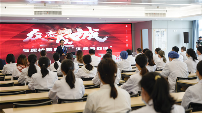 据了解,在2020年新冠肺炎疫情防控阻击战中,身处武汉的华中科技大学和附属同济医院,是投入力量最多、作出贡献最大的高校和医院,同济医院“尖刀连”重症救治团队还被授予“时代楷模”称号。此次思政宣讲活动走进抗疫主战场,以抗疫精神激励“后浪”,颇具意义。主讲人周宁作为同济“尖刀连”的优秀代表,同时还是全国抗击新冠肺炎疫情先进事迹报告团成员。