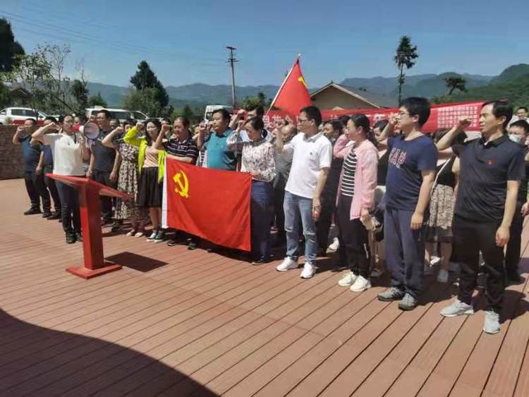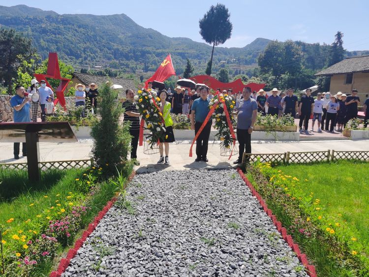 义诊结束后,口腔科党支部党员来到了牛洞坪村黄大鹏广场红色教育基地。在这里观看红色教育纪录片,聆听革命先烈英勇事迹。在纪念碑前重温入党誓词,学习党史,并为在第二次国内革命战争时期牺牲的黄大鹏烈士(巴归兴苏区创始人)敬献花圈,缅怀革命先烈。