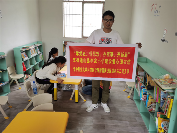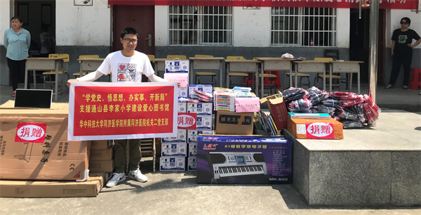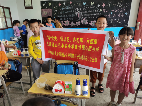 6月8日上午,一辆满载同济医院机关二党支部全体党员爱心的小车,驶入通山县李家小学校园,车上装着100本图书、100余个粽子、50余个蛋糕及酸奶。