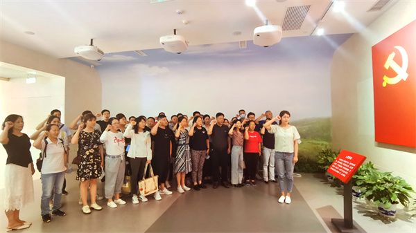 6月11日下午,科研党支部同志们乘车来到这里,开展党史学习教育现场教学。全体党员首先在中国共产党纪律建设历史陈列馆里,开展了主题党日活动,在党旗下郑重宣誓,重温入党誓词。声声誓言显示着党员们不忘初心、砥砺奋进的坚定信念和决心。