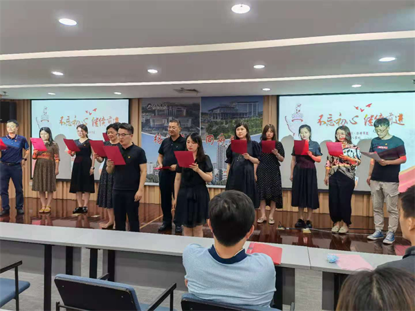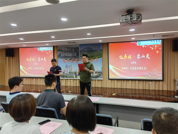 6月15日晚6点整,机关二党支部在行政楼18楼举办“致敬伟大的党·纪念建党100周年诗歌朗诵会”,向建党100周年献礼。 朗诵会由方舟和王斯达两位同志主诗,支部书记曾正航同志向大家简要介绍了诗歌朗诵会的筹备过程及其深刻意义。本次活动所选诗歌以毛主席诗词为主,其他爱国爱党的诗歌为辅,参加人员为全体党员和入党积极分子。活动要求自选诗词,自行配乐,自行练习,自行参加朗诵活动;朗诵语言可为普通话,可为方言,只要好听,观众能听懂就行。活动的目的是通过诗词朗诵,体会革命家的革命理想和家国情怀,增强我们的“四个自信”和干好本职工作的信心。活动重在参与,不设奖项。