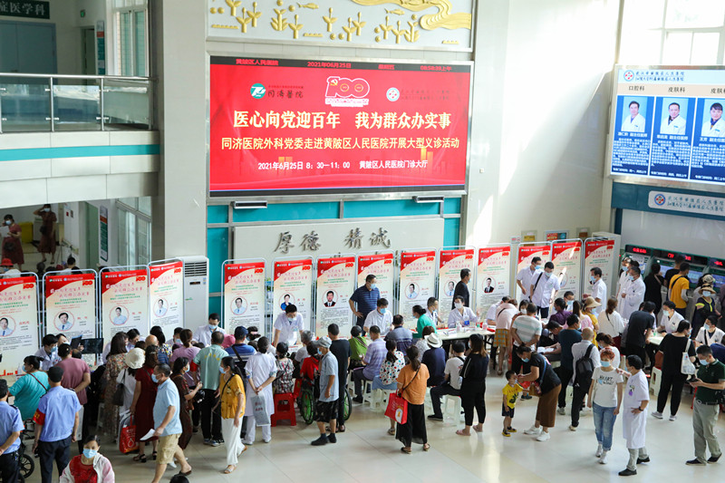 6月25日,同济医院外科党委走进黄陂区人民医院开展“医心向党迎百年,我为群众办实事”主题义诊。黄陂区卫健局局长蔡绍英、黄陂区人民医院院长朱绍咏参加开幕式并致辞。同济医院副院长白祥军,同济医院外科党委书记丁东及外科党委12个学科的老中青专家团队一行30余名人参加了此次义诊活动。黄陂区人民医院副院长王曙初主持开幕式。