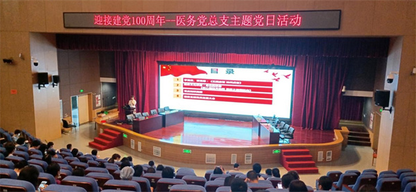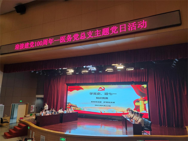 在全党开展党史学习教育,是党中央立足党的百年历史新起点、统筹中华民族伟大复兴战略全局和世界百年未有之大变局、为动员全党全国满怀信心投身全面建设社会主义现代化国家而作出的重大决策。自党史学习教育活动开展以来,医务党总支积极投身党史学习教育的浪潮中,力求学有所思、学有所悟、学有所得。6月22日下午,医务党总支的党员们齐聚行政楼3楼,开展了“庆祝中国共产党成立100周年主题党日活动”。本次活动由护理部一党支部书记袁芳同志主持,分为学党史讲党课、医务文化讲堂、党史知识竞赛三个环节。