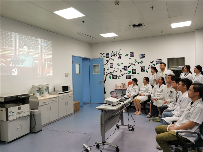7月1日上午,同济医院研究生党委组织师生在医院学术交流中心集中观看庆祝中国共产党成立100周年大会,学习习近平总书记重要讲话。