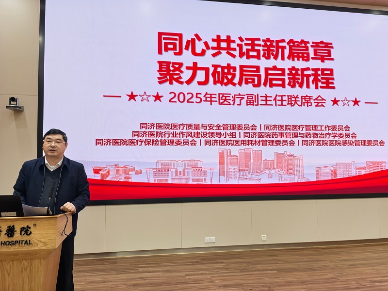 会上,门诊办公室主任李刚围绕2025年年度目标、存在主要问题和重点工作开展专题报告,着重介绍了在保量、提质和增效方面的举措,包括新晋职称医师安排、诊室共享制度、125专项行动等重点工作,以进一步激活门诊增长动力,为患者提供更加优质的医疗服务。医保办主任左后娟梳理了2025年医院医保DRG运行工作概要,汇报了医院2025年医保最新回款情况及DRG付费最新政策动态,重点强调了需对标医保支付标准,提高医保基金使用效率。医务处处长吴剑宏围绕2025年医疗工作目标、医疗工作形势和重点工作作专题报告,着重阐述医疗核心制度重要性,深入剖析医院医疗质量安全工作当前存在的问题与挑战,并提出要进一步挖掘医疗工作潜力,提高医疗工作量质效的思路和机制保障。