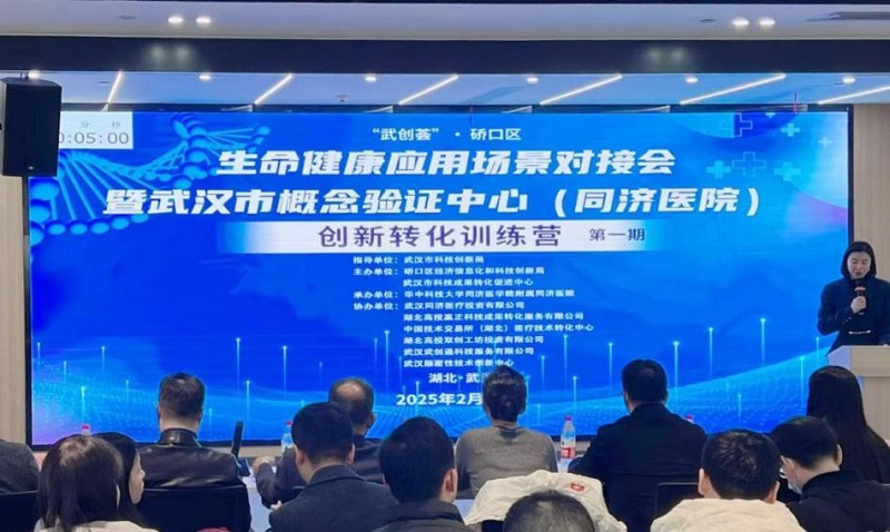 为进一步发挥科技创新引领作用,推动科技成果转化及市场应用,2月21日下午,由武汉市科技创新局指导,硚口区经济信息化和科技创新局、武汉市科技成果转化促进中心共同主办,华中科技大学同济医学院附属同济医院承办,武汉同济医疗投资有限公司等6家单位共同协办的“武创荟”•硚口区生命健康应用场景对接会暨武汉市概念验证中心(同济医院)创新转化训练营(第一期)活动在武汉同济产业科创中心顺利举行,武汉市科技创新局副局长柯敏出席活动,同济医院副院长朱文珍致辞并参与项目点评。