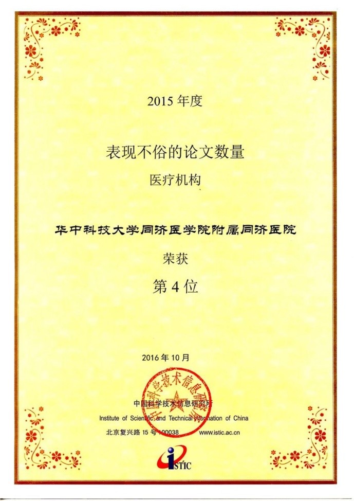 2015年度表现不俗论文数量,位居全国医疗机构第四;