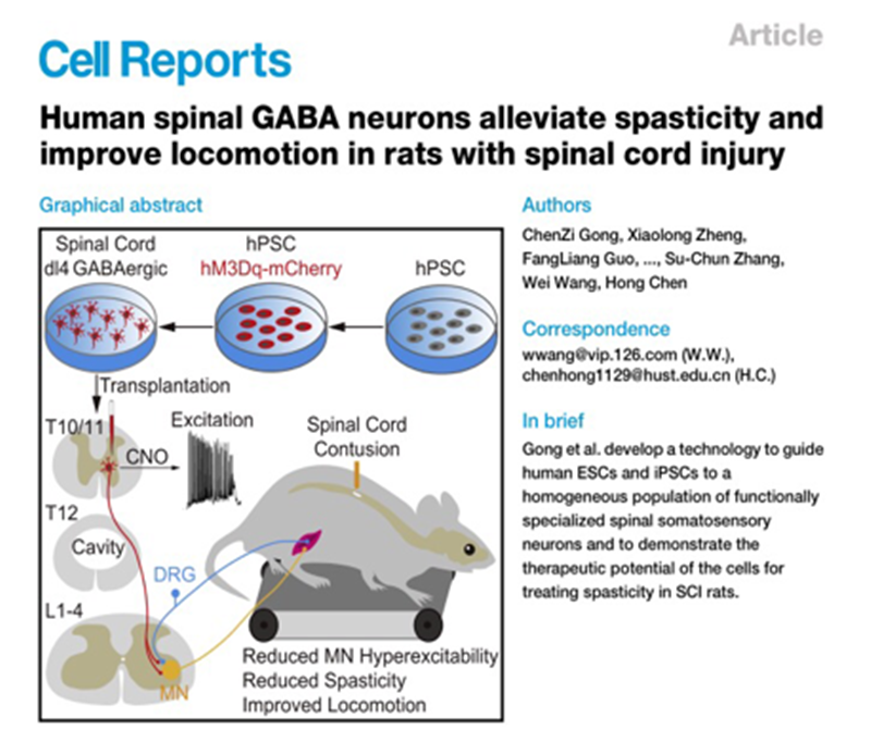 同济医院陈红教授在Cell Reports发表论文:利用人脊髓GABA神经元移植有望治疗脊髓损伤引起的痉挛和运动障碍