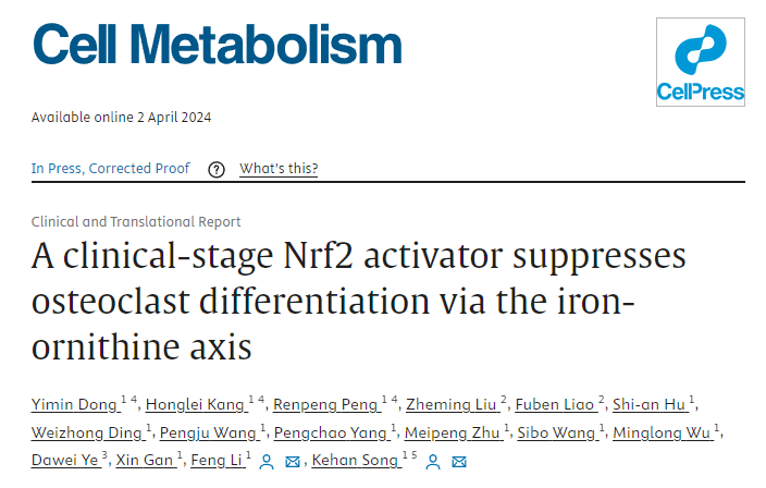 近日,华中科技大学同济医学院附属同济医院骨科李锋教授团队通过近6年的研究发现一款新的临床阶段的Nrf2激活剂Bitopertin,该激活剂能够通过抑制破骨细胞分化而缓解骨质疏松。该研究不仅为骨质疏松症的治疗提供了新的视角,而且可能对其他与铁代谢紊乱相关的疾病产生深远影响。该成果近期发表在国际权威期刊《细胞代谢》(《Cell Metabolism》)上。