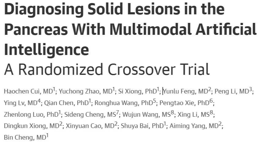 一个针对胰腺肿瘤诊断的多模态AI模型,对前瞻性数据集进行了交叉试验后,结果显示AI辅助诊断可显著提高新手内镜医师的准确性;通过提供可解释性分析结果,帮助经验丰富的内镜医师理解模型的决策逻辑,进一步提高了其对人工智能预测的接受度。华中科技大学同济医院消化内科程斌教授团队开发的这款诊断模型未来有望用于胰腺实体病变的临床诊断。该研究已发表在国际权威期刊《JAMA Network Open》上。