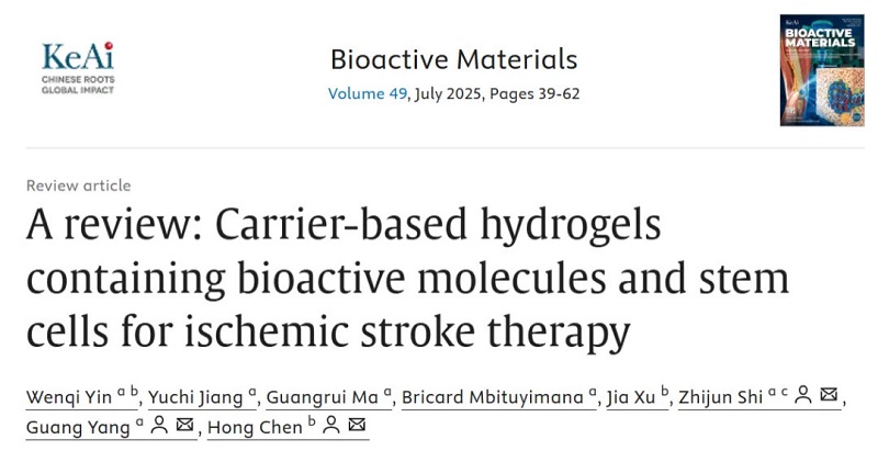 3月5日,华中科技大学同济医学院附属同济医院康复医学科陈红教授联合华中科技大学生命科学与技术学院生物医学工程系杨光教授3-Bio团队在国际著名期刊《Bioactive Materials》上发表了题为“A review: Carrier-based hydrogels containing bioactive molecules and stem cells for ischemic stroke therapy”的综述,深入探讨了载体型水凝胶联合干细胞在缺血性脑卒中治疗中的应用。