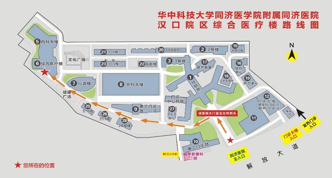 汉口院区:同济医院综合医疗科国际医疗部6号楼路线图