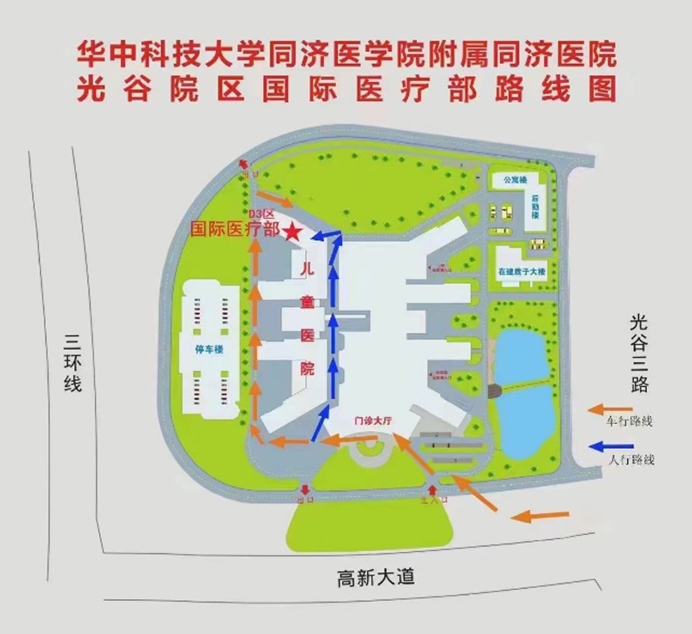 2. 地址:中国湖北省武汉市东湖新技术开发区高新大道501号同济医院D3区国际医疗部